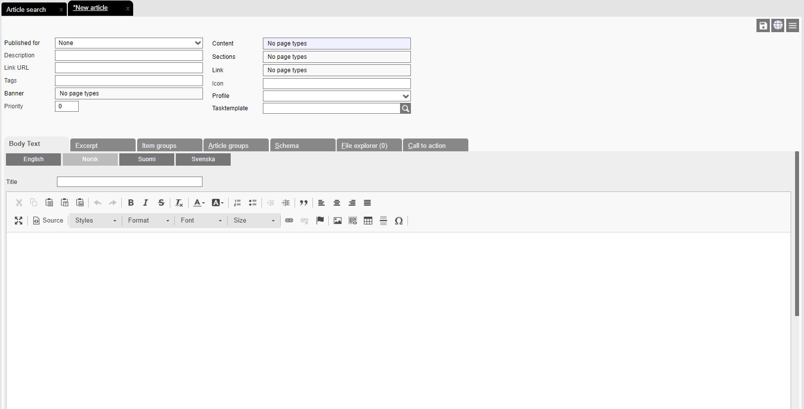 A new article will then open to which you can add content.