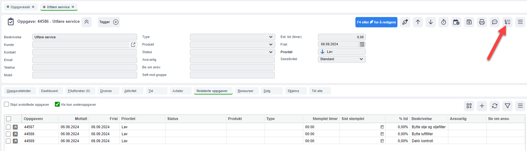 - Click on the "Open task hierarchy view" button in the top right corner beside the hamburgermenu.
