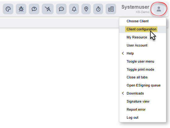 Click your user icon in the top right of Quick3, and find the menu option "Client Configuration".