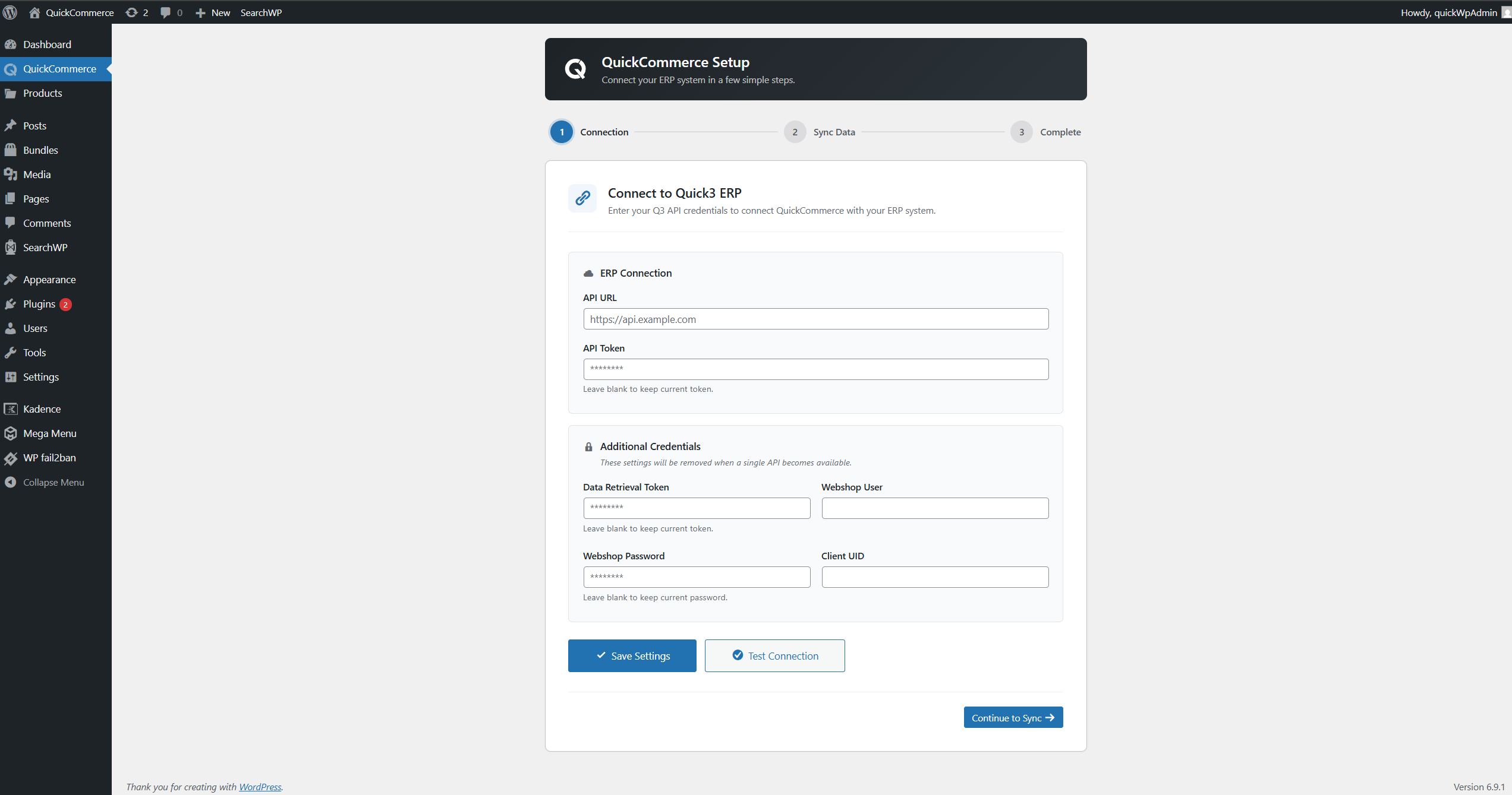 QuickCommerce is an ERP-connected eCommerce plugin for WordPress that integrates with the Quick3 ERP system. It delivers a fully synchronized storefront where products, inventory, orders, and customer data flow between WordPress and your Q3 ERP instance.