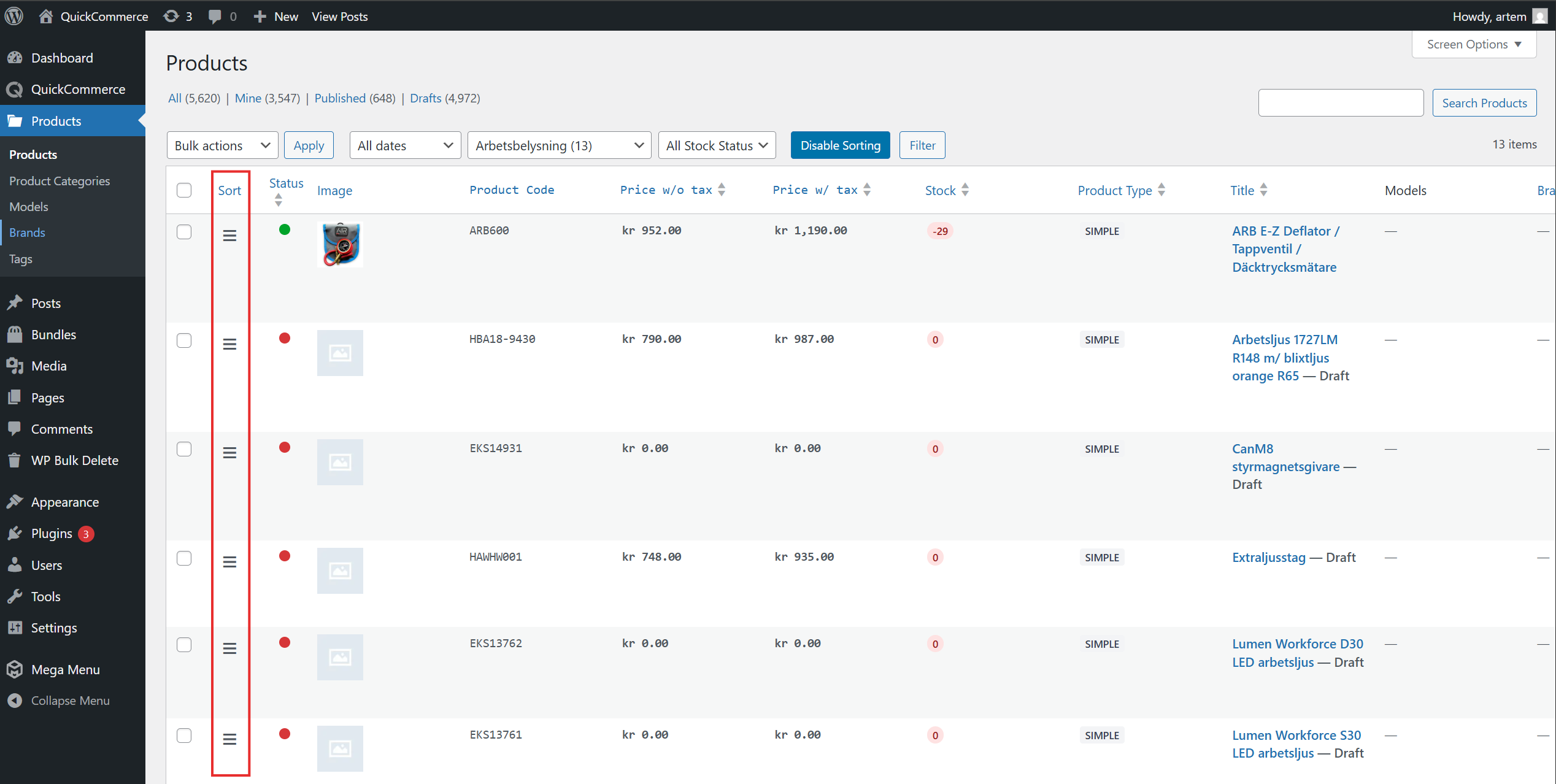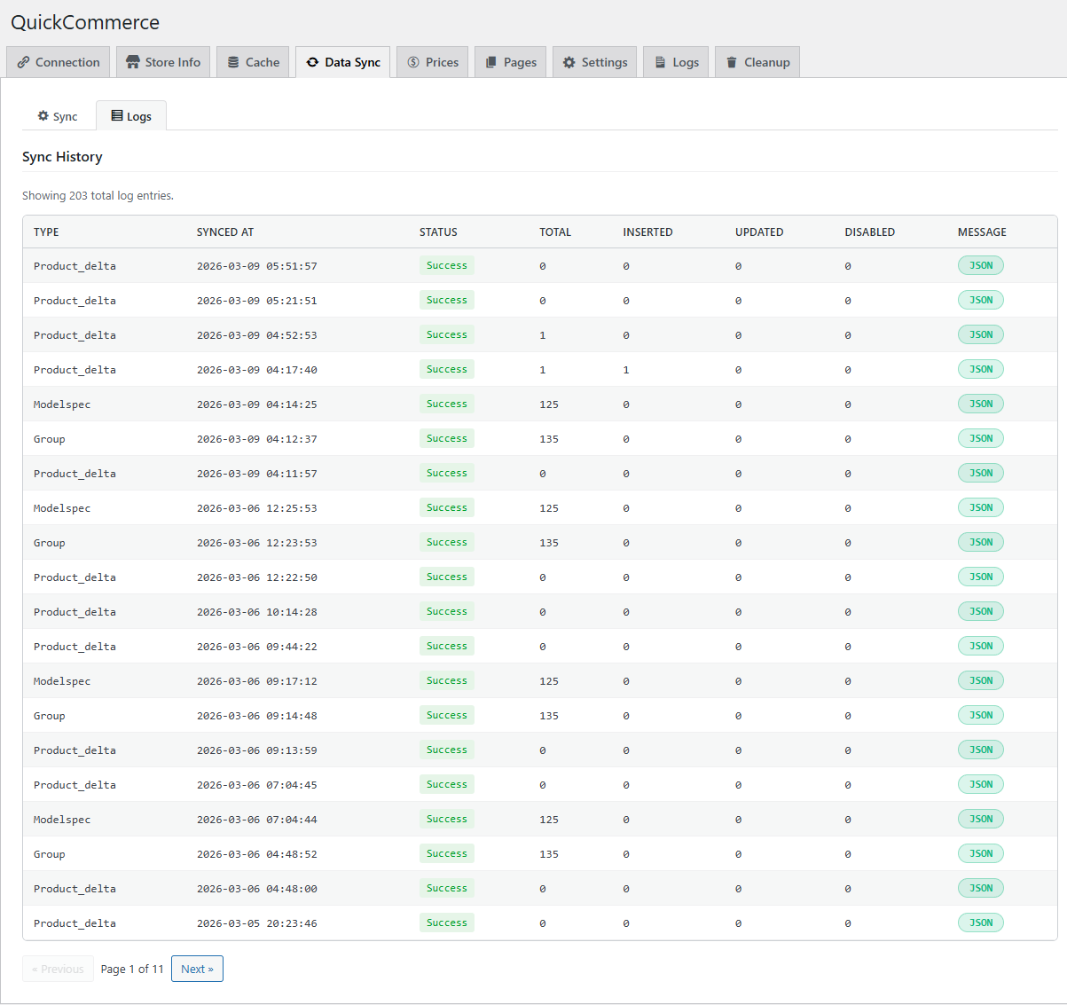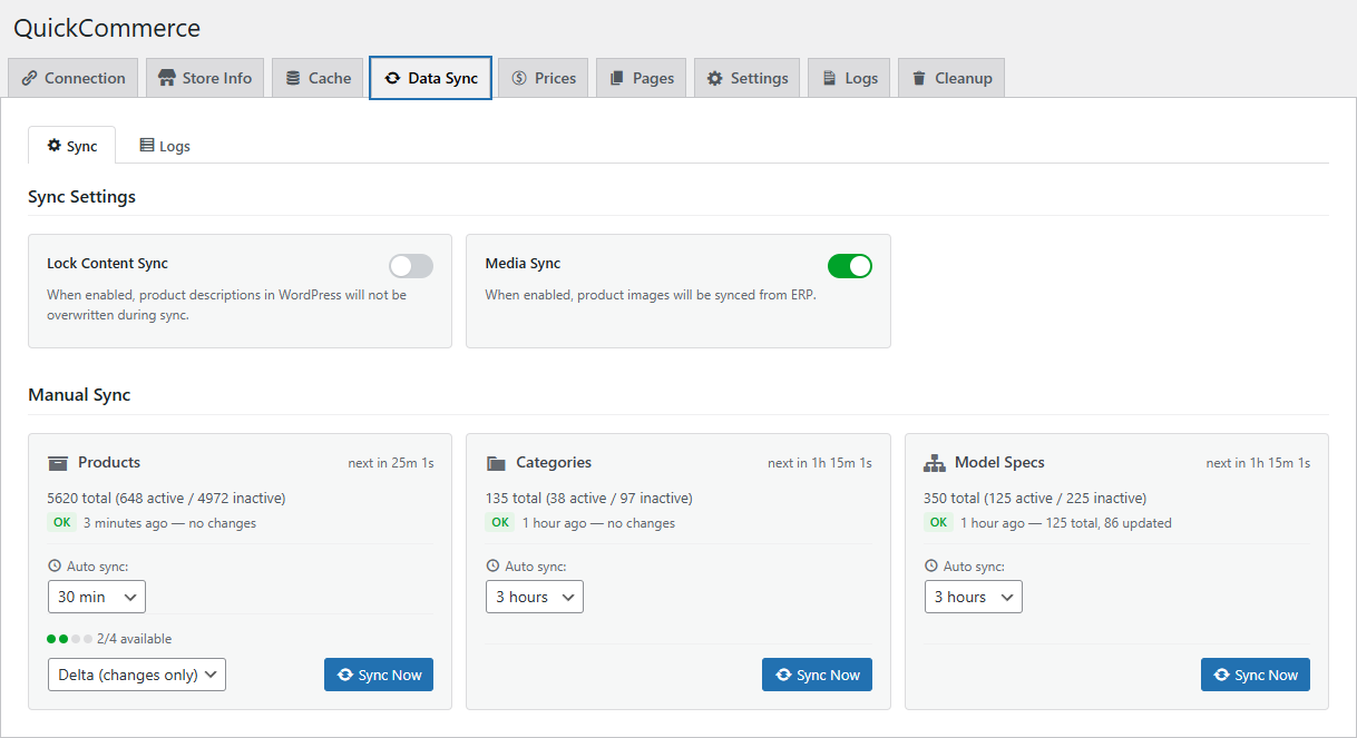 | Prices not updating | Trigger a manual sync from QuickCommerce > Data Sync or the product's Quick3 sidebar. |