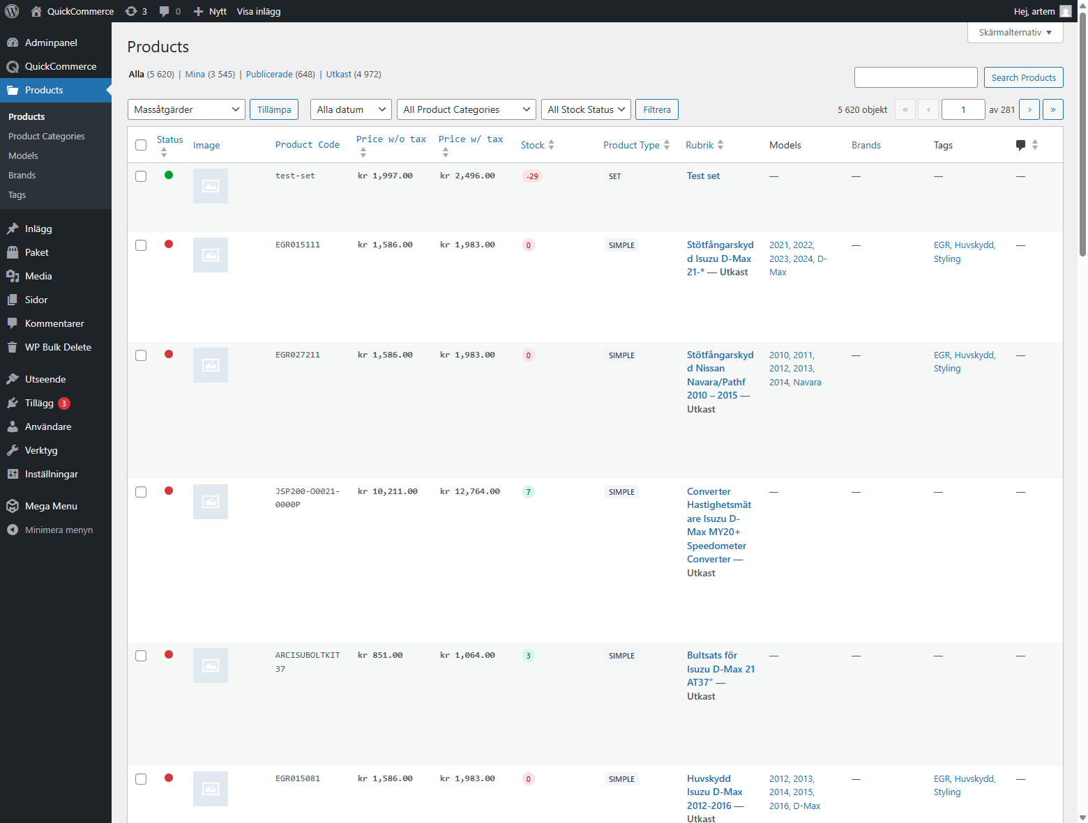 | Product not appearing on storefront | Product may be set to "draft" because it is not web-active in Q3. Check the web-active flag in Q3 ERP and re-sync. |