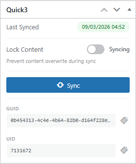 | Description keeps getting overwritten | Enable the Lock Content toggle in the product's Quick3 sidebar. |