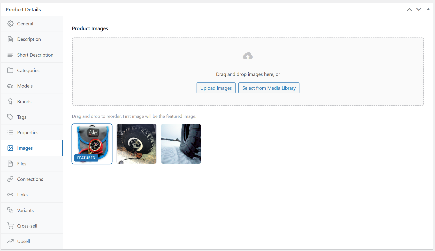 | Variant images not appearing | Check the Images tab -- variant images are shown in a separate section below the main gallery. |