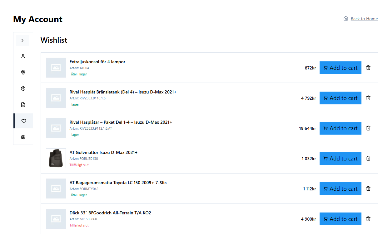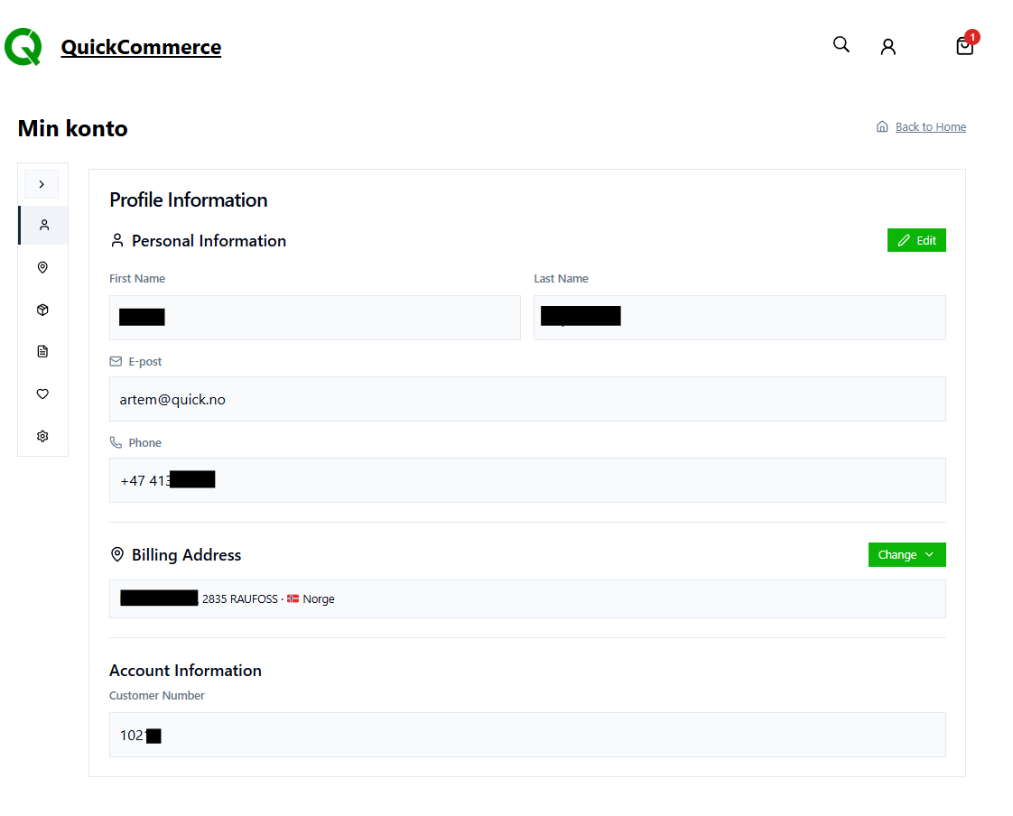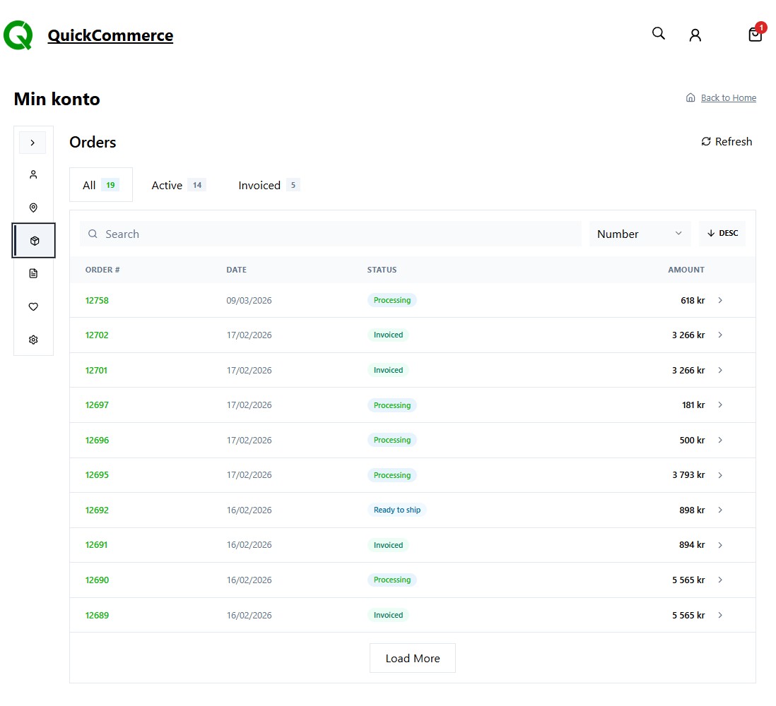 - Cart and checkout with ERP-based order management for both B2B and private customers