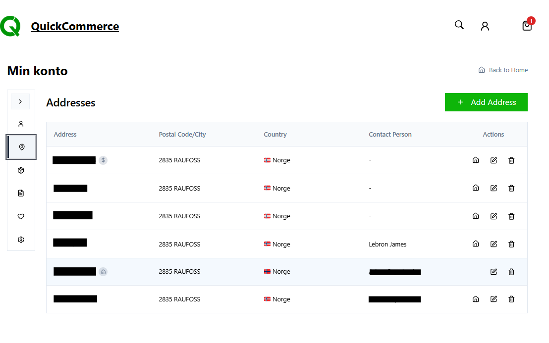 | Cannot delete an address | Address may be in use by an active order. Wait until the order completes. |