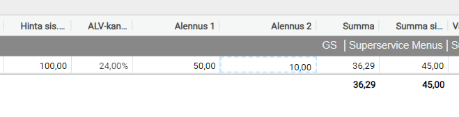 Alennus 2 lasketaan summasta, joka saatiin ensimmäisen alennuksen jälkeen, tässä tapauksessa 50 eurosta.
