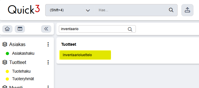 Mikäli tulostit paperiset listat, avaa inventaariolistat Quickissä laskennan jälkeen. Tietokoneella / älypuhelimella tehdessä oikeat määrät kirjataan luonnollisesti suoraan Quickiin.