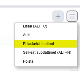- Tuotteet, jotka on jo laskettu, jätetään pois. Muilla inventaariolistoilla olevat tuotteet eivät siis tule tähän mukaan