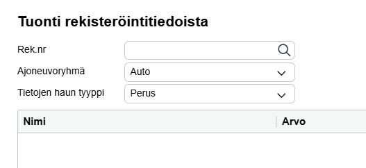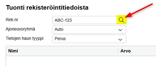 Näiden kolmen kentän täyttämisen jälkeen paina rekisterinumerokentän vieressä olevaa suurennuslasia.
