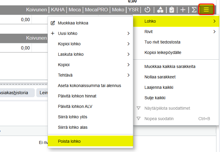- Ylimääräiset lohkot voidaan aina tarvittaessa poistaa