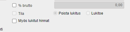 Lukittujen hintojen muokkaamiselle on kaksi mahdollisuutta. Voit tehdä ensin erillisen ajon, jossa avaat hinnat, minkä jälkeen voit ajaa hintamuutokset. Tai voit rastittaa vaihtoehdon "Myös lukitut hinnat", jolloin hinnat muutetaan lukituksesta huolimatta.
