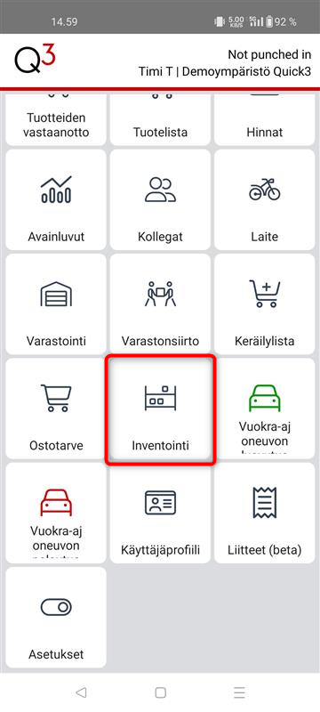 Toiminto löytyy painamalla Inventointi-kuvaketta sovelluksessa.