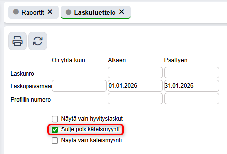 - Raportit - Myynti - Laskuluettelo