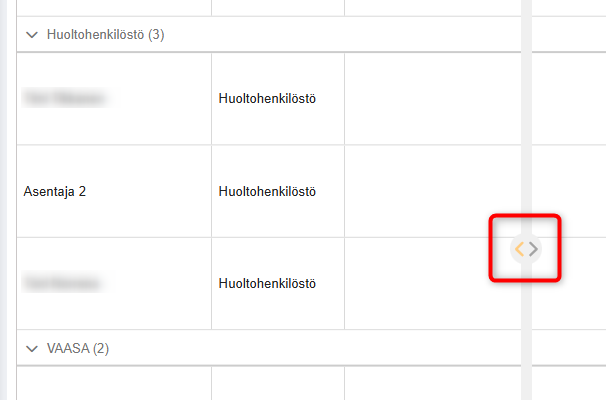 Resurssinäkymää on myös mahdollista kutistaa tai laajentaa, jos tarvitset enemmän tilaa aikajanalle. Vie hiiri reunan päälle, niin nappi näkymän kutistamiseksi tai laajentamiseksi tulee näkyviin.