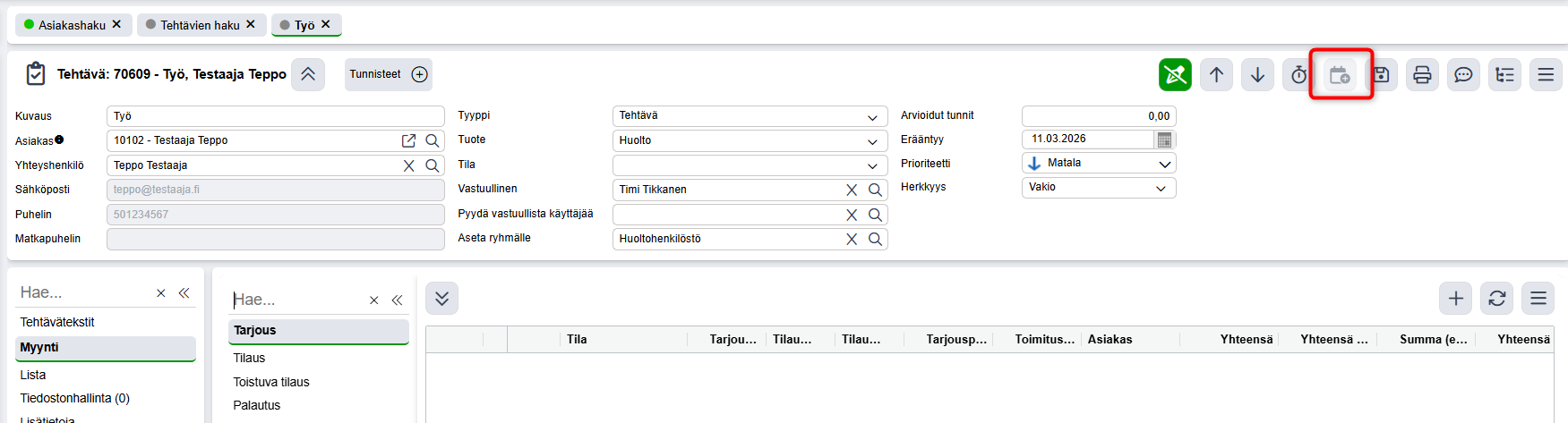 Täällä voit tarkastella ja käsitellä kaikkia työmääräyksiä / tehtäviä, joille ei ole vielä varattu aikaa. - Aikajanan hallinta