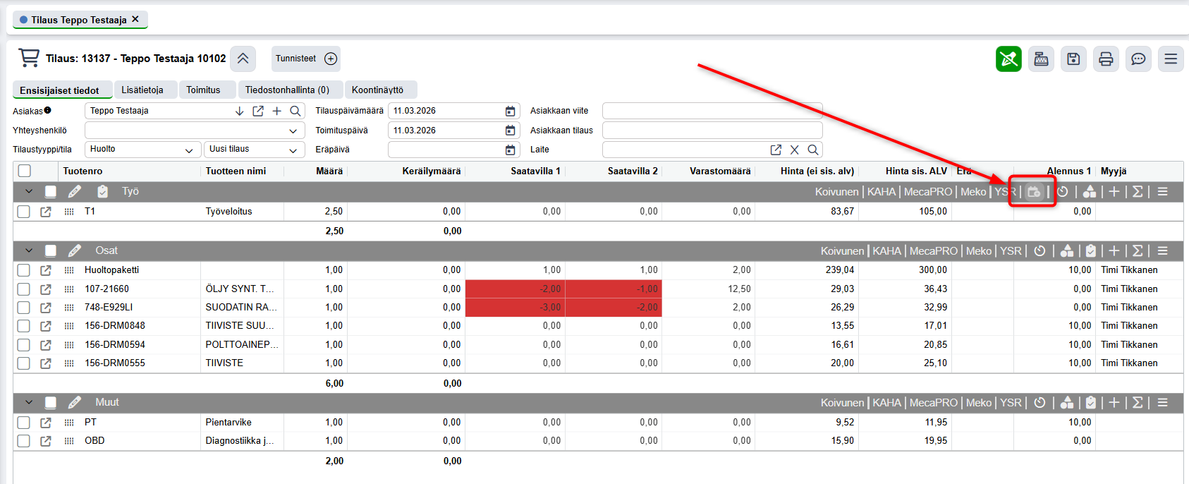 "#TASKTEXT#" = "Huoltoon tarvittavat osat löytyvät liitteenä olevista dokumenteista. Kysy lisää Matilta."