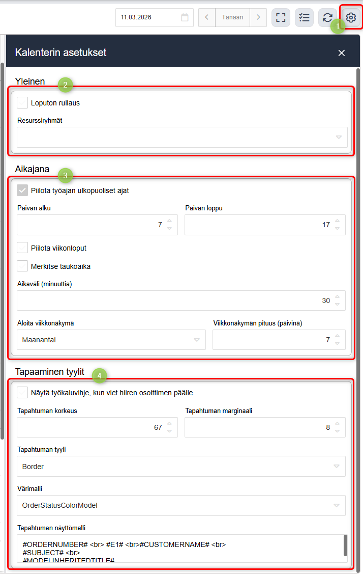 Kalenterin asetukset