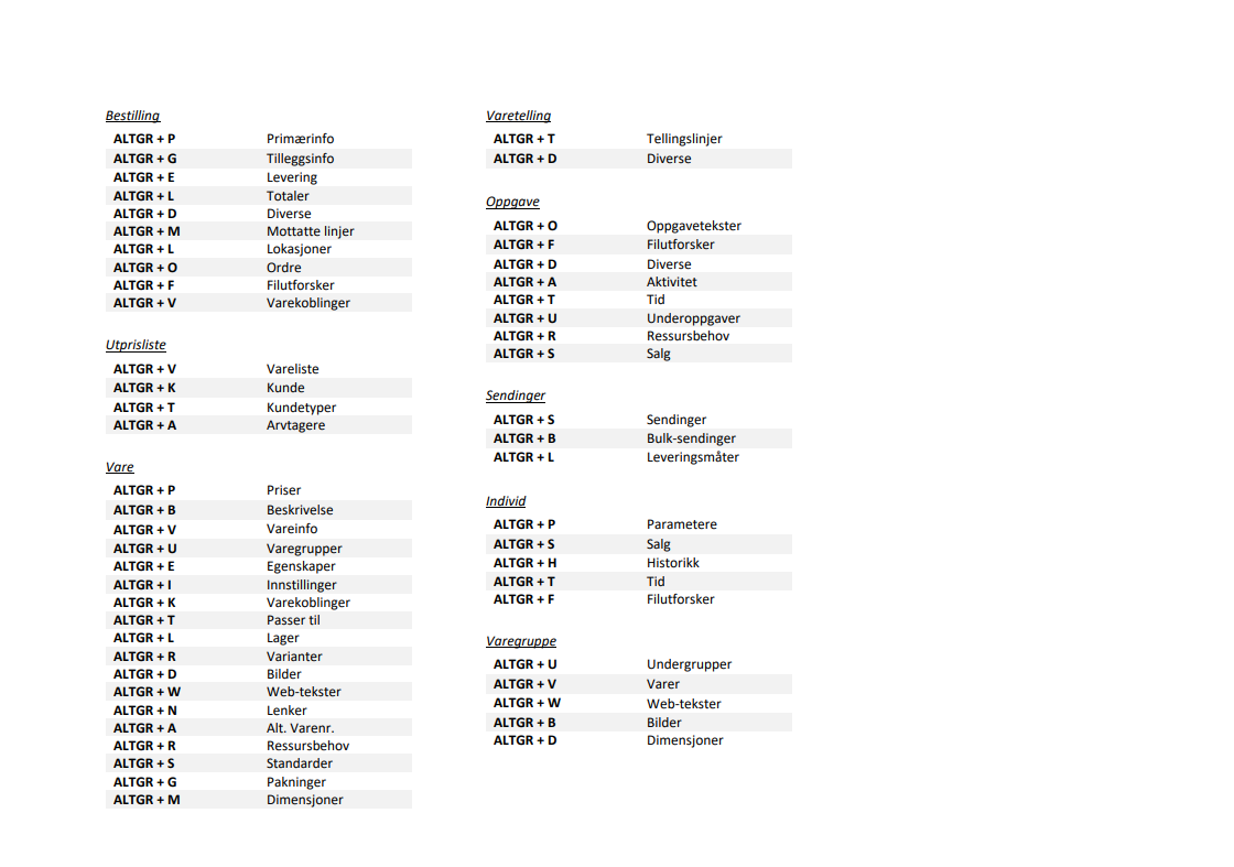 - Alt + K — Kundesøk