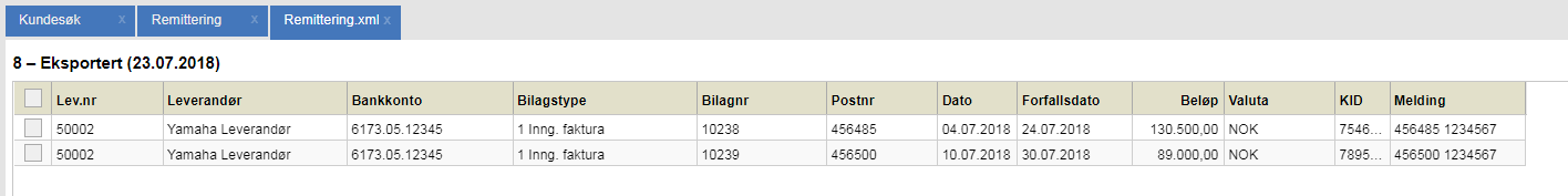 Viser de postene som var med i den aktuelle kjøringen. Kan være nyttig for å sjekke hvilke poster som ble overført til banken på en gitt dato.