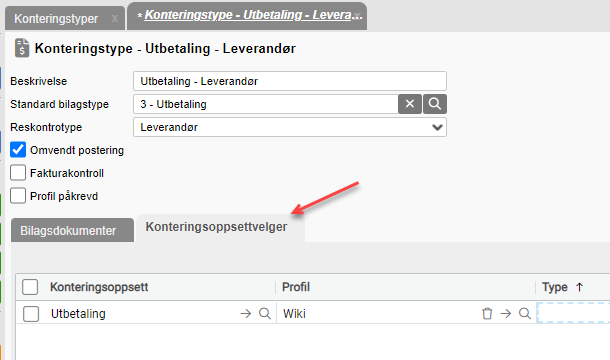 Å angi fast konteringsoppsett for konteringstype er ikke vanlig å gjøre for inng.faktura, da dette i stedet settes pr leverandør.