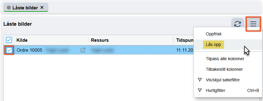 Det kan selvfølgelig skje at en bruker forlater en låst visning uten hensikt. Man kan da tvangsåpne denne visningen ved å navigere til hovedmenyen (⌨️Alt+H) og deretter Annet > Låste bilder.