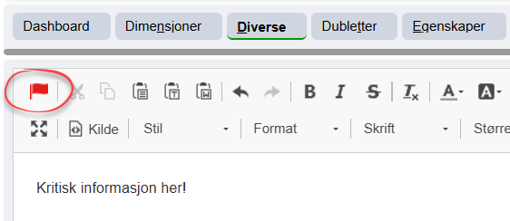 Om det er informasjon som anses som kritisk for ansatte, kan feltet flagges ved å trykke på flagget øverst til venstre i verktøylinjen. Ikonet vil bli rødt når det er aktivt.