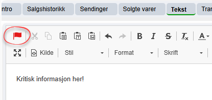 Om det er informasjon som anses som kritisk for ansatte, kan feltet flagges ved å trykke på flagget øverst til venstre i verktøylinjen. Ikonet vil bli rødt når det er aktivt.
