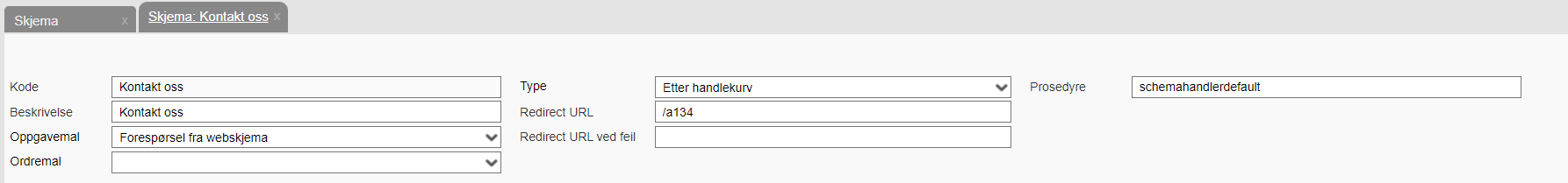 For web: Prosedyre: I dette feltet definerer man hvilken prosedyre skjemaet skal følge. (Krever administrator-rettigheter)