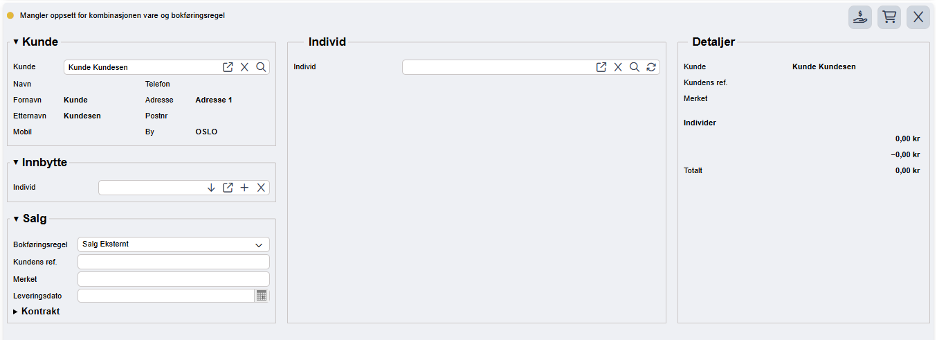 Individet blir lagt inn som salgsindivid (det kommer videre tilpasning for dette).