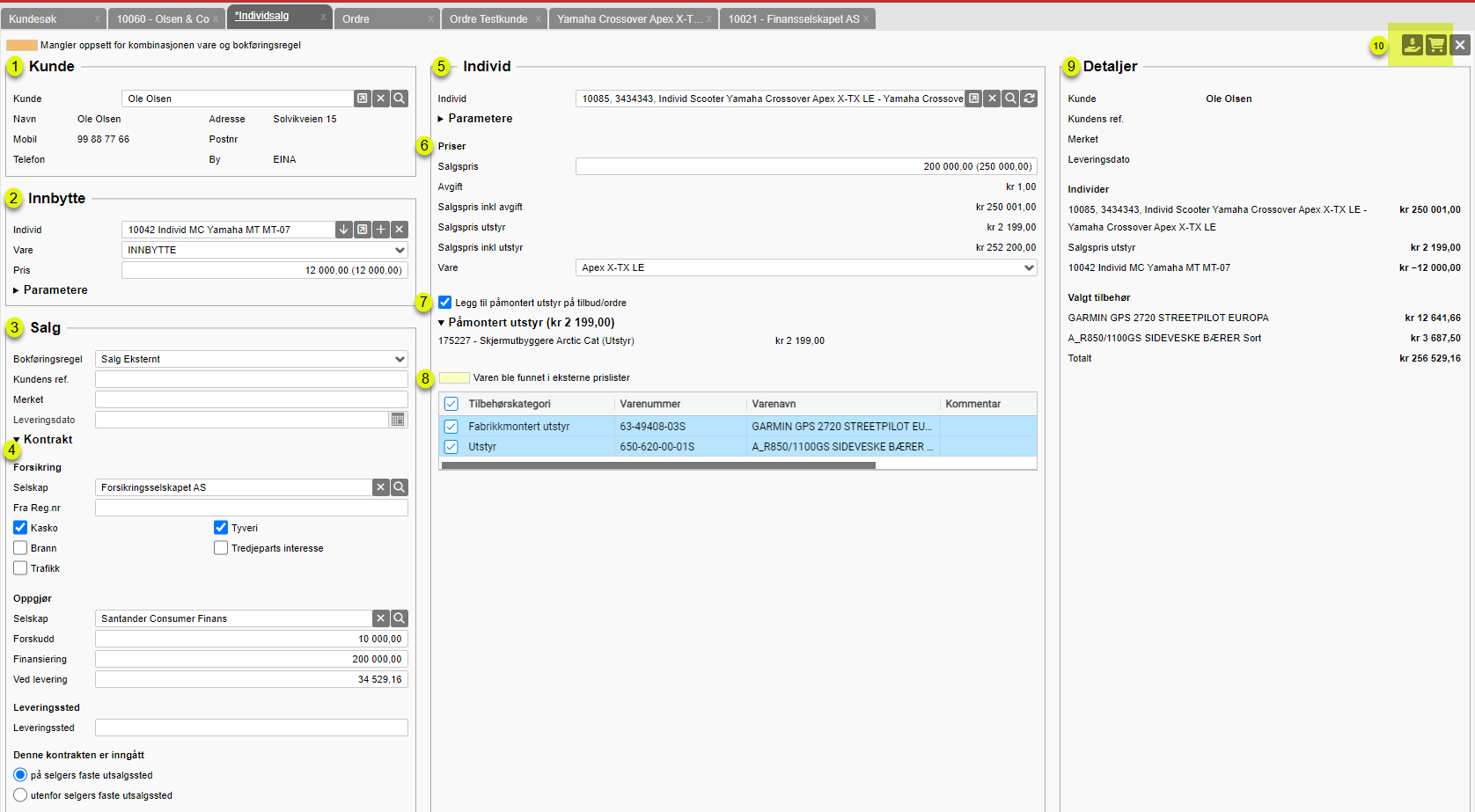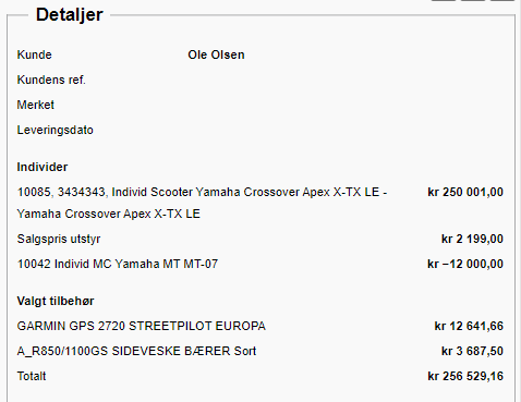 - Salgspris: Hentes automatisk fra feltet "Salgspris" på individkortet.