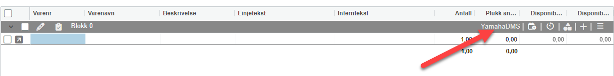 "YamahaDMS" vises som en egen knapp i blokkmenyen din. Dette gjelder både tilbud og ordre.