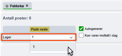Dette overstyrer utvalgslogikken i selve pakkekøbildet slik at ordren vises uavhengig av filtrering. Prioriteringen for slike manuelle ordre bestemmes av prioriteringsregelen "Ordre sendt til pakkekø". Ordre som blir sendt manuelt til pakkekøen på denne måten utfører ikke reservasjon av ordrelinjer slik automatisk generering gjør.