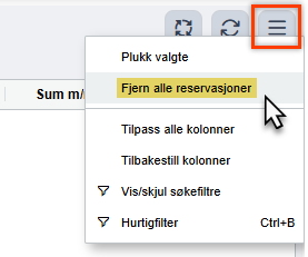 Man kan fjerne alle reservasjoner på alle ordre i pakkekøen ved å åpne hamburgermenyen og velge "Fjern alle reservasjoner".