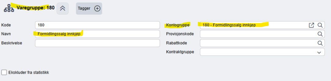 Opprett en varegruppe, gjerne med samme nummer og navn, og knytt denne mot kontogruppen.
