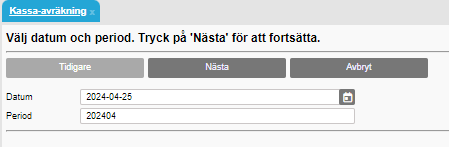 Exempel: Gjordes ingen avräkning dagen innan så inkluderas även dessa siffror med i dagens avräkning. - Tryck på Nästa för att gå vidare
