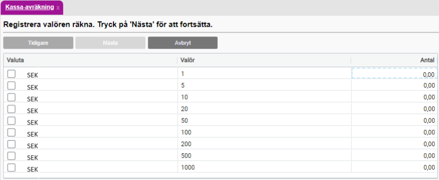 - Steg 5: Registrera Kontanter (Valörer)